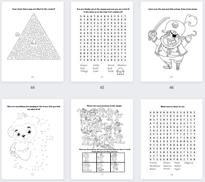 With this story activity book, you help Jack the pirate to find his treasure. Follow along with a pirate story while doing all the activities in the book. You get a real certificate when complete